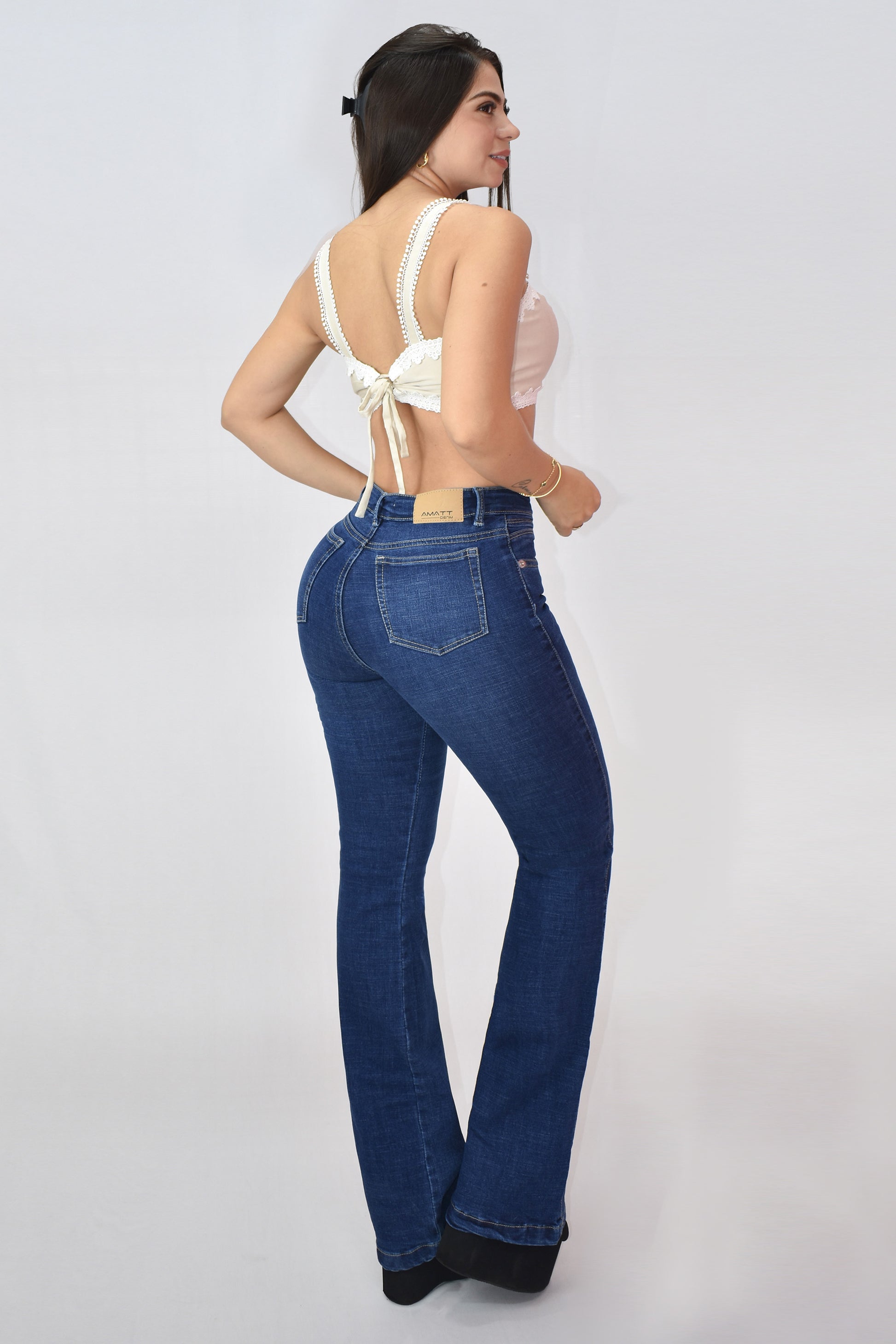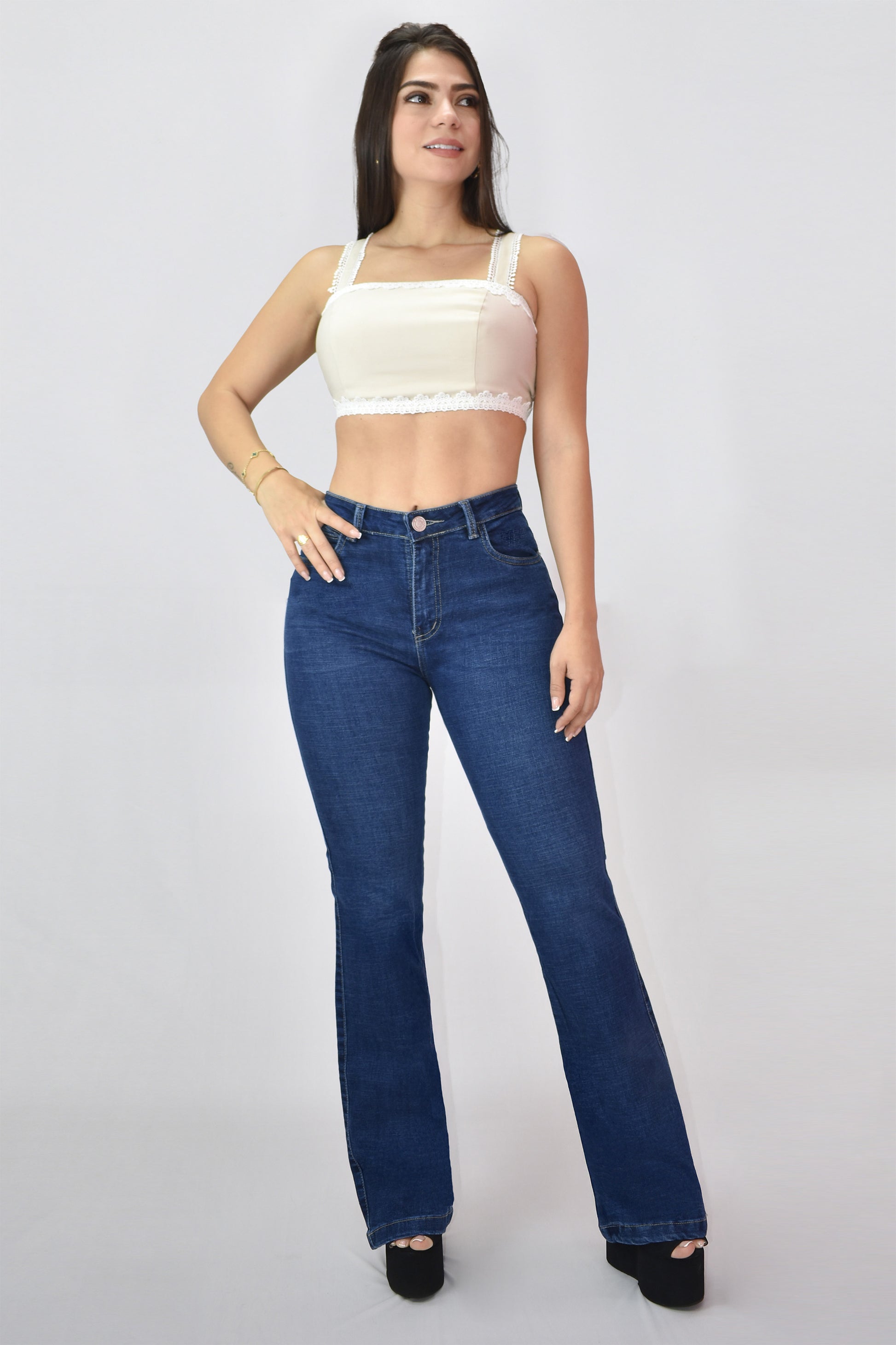 Jeans Bota Campana afinan tu cintura, alargan tus piernas y moldean tu silueta de forma natural.