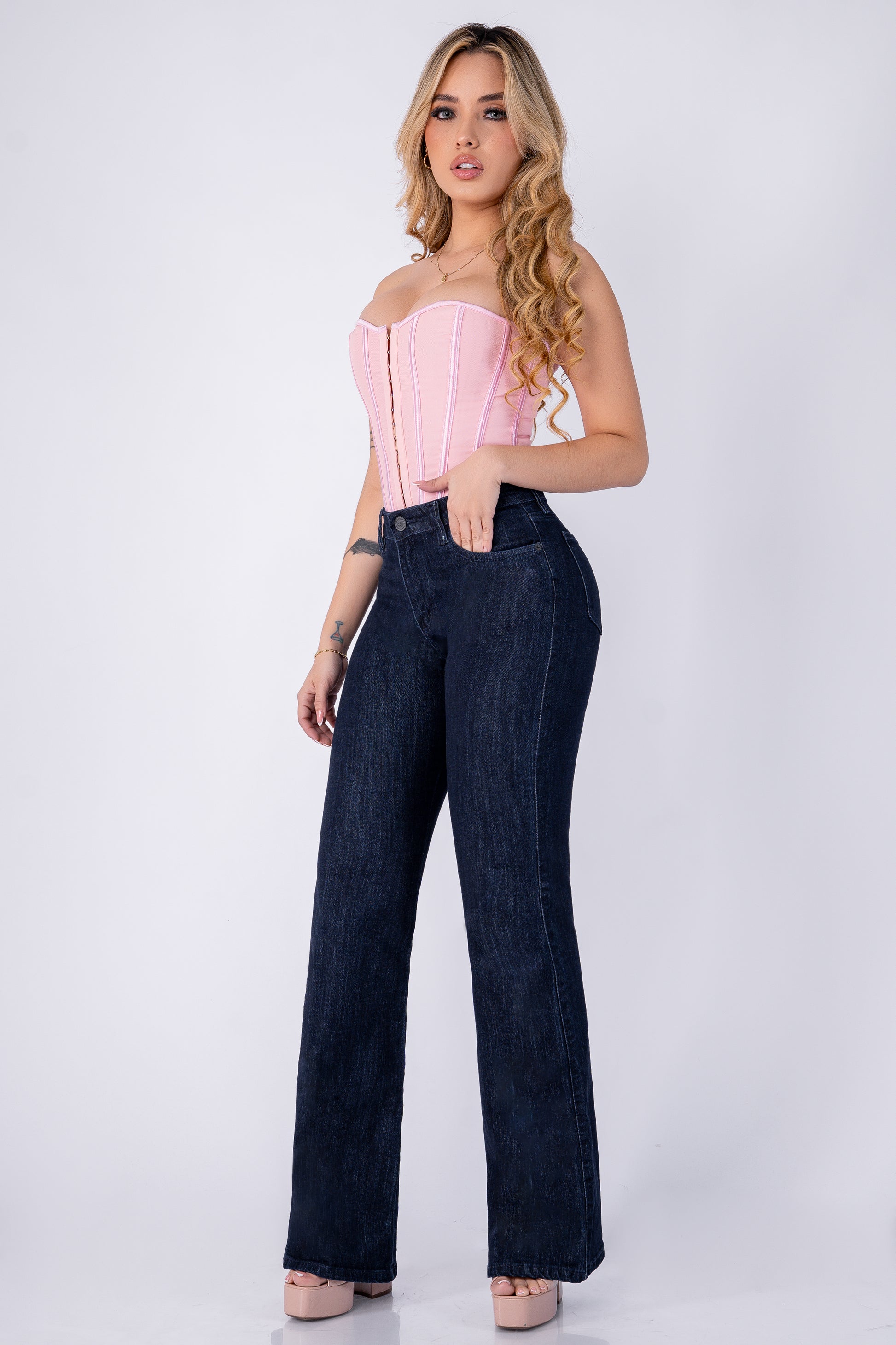 Jeans Bota Campana afinan tu cintura, alargan tus piernas y moldean tu silueta de forma natural.